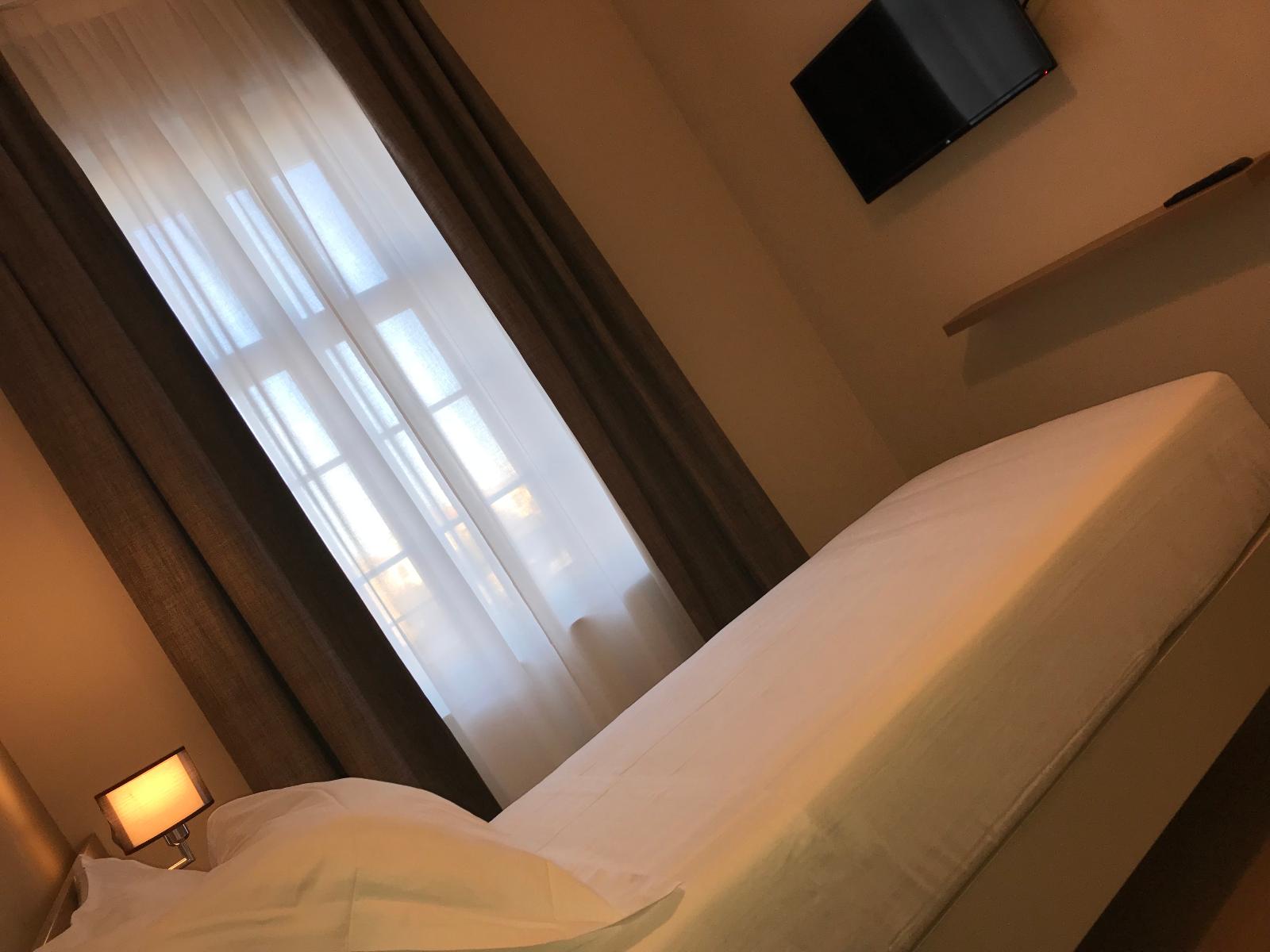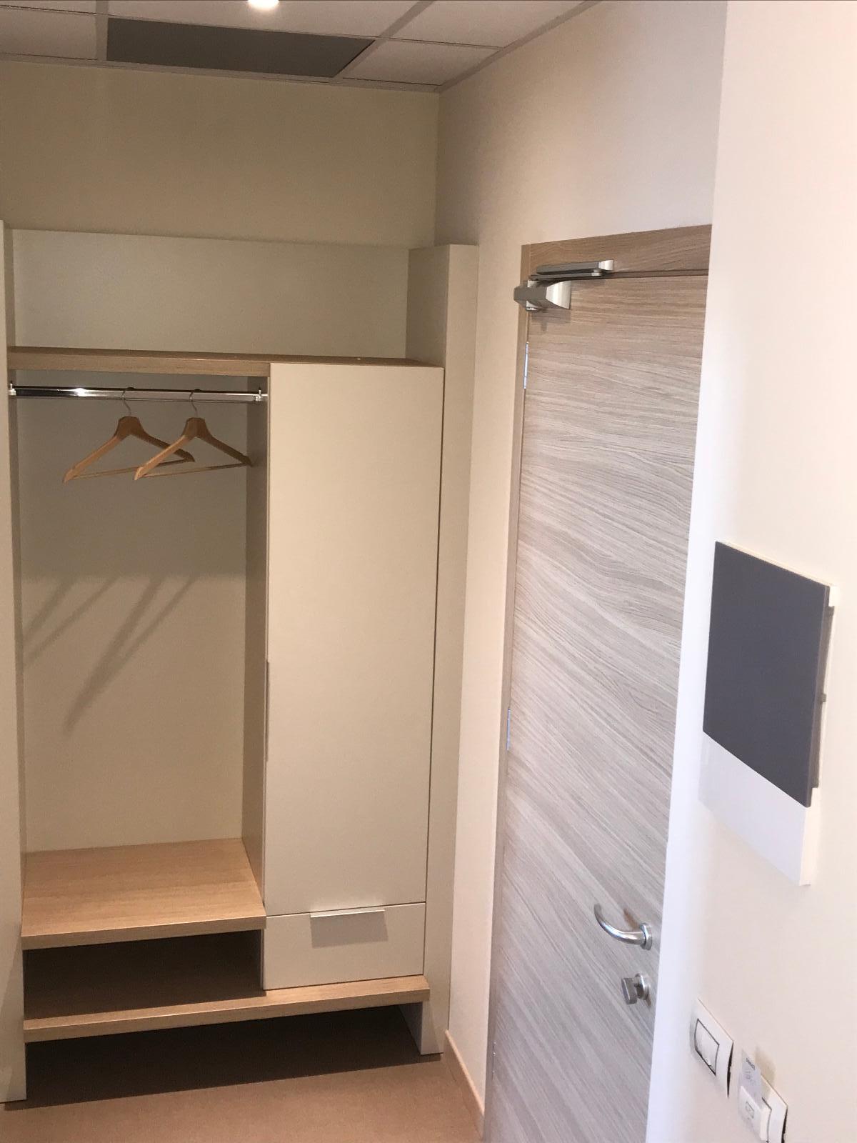 The room is however larger than the average and is equipped with an electronic lock with card, internal telephone, LCD TV, LED lighting, wardrobe, desk, air conditioning, fridge, shower, anti-allergic and anti-static PVC floor, soundproof windows and blackout curtains.